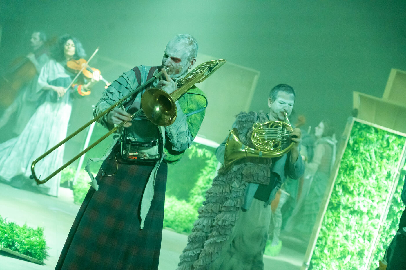Die Gegensätze von Streich- und Blasinstrumenten, von freien Musiker*innen und Mitgliedern eines Staatsorchesters sowie von notierten und improvisierten Klängen werden die musikalische Basis liefern, auf der diese musikalisch-performative Neukreation entsteht. In Bára Gísladóttirs Komposition für Beginn kommt Percussions-Instrumenten eine besondere Relevanz zu, auch Bühnenelemente werden auf klangliche Möglichkeiten hin untersucht und die Körperlichkeit der Musik und der Musikmachenden selbst rückt in den Mittelpunkt und verschiebt die Hörgewohnheiten.
