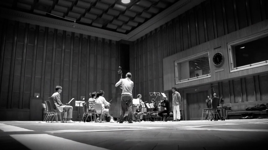 Die im Dunkeln agierenden Spieler*innen katapultieren die Hörer*innen in verschiedenste musikalische Räume. Diese führen von Hindemiths Ouvertüre zum Fliegenden Holländer, wie sie eine schlechte Kurkapelle morgens um 7 am Brunnen vom Blatt spielt über Pression von Helmut Lachenmann und Quartette von Haydn und Britten bis hin zum Vorgefühl der Ankunft eines Engels in Sánchez-Verdús Concerto Grosso für Geräuschemacher und Engel-Streicher. Mit Bearbeitungen von romantischen Bestsellern wie dem Kampf der Montagues und Capulets aus der Ballett-Suite Romeo und Julia von Sergej Prokofjew geht es weiter über Raumkompositionen von Michael Rauter bis hin zu Arrangements ungarischer Volkstänze.