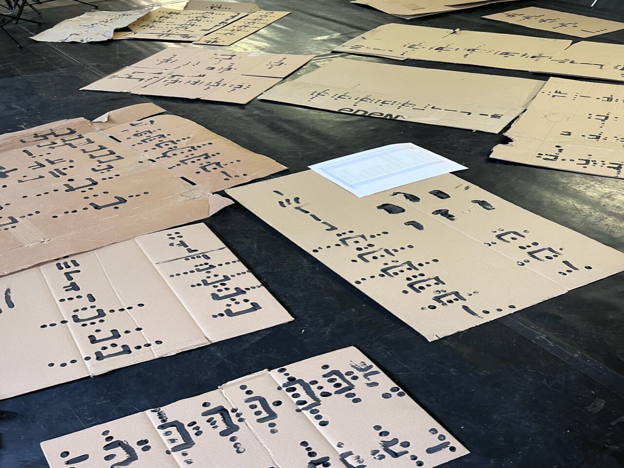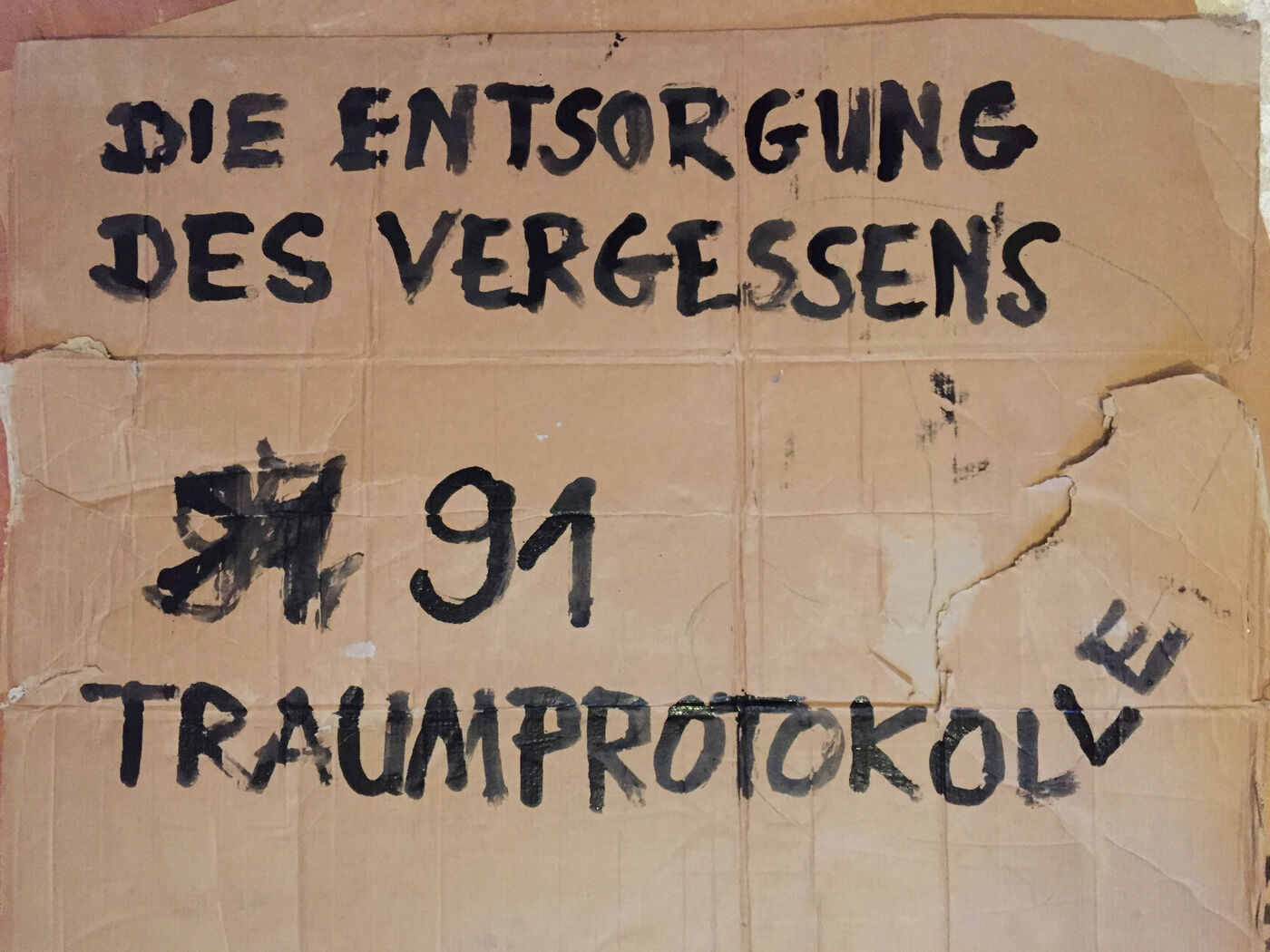 Die Perfomer*innen des Solistenensemble Kaleidoskop und Georg Nussbaumer träumten und sind sich im Traum begegnet. Nun spielen sie sich entlang der gesammelten Traumprotokolle mit einer archaischen Notationsschrift durch eine von Taschenlampen perforierte Dunkelheit. Verknüpfen die Träume wieder mit alten Aufzeichnungen und neuen Berichten – aufgefangen an der Kippstelle zwischen Wachen und Schlaf, zwischen Vergessen und Erinnern.