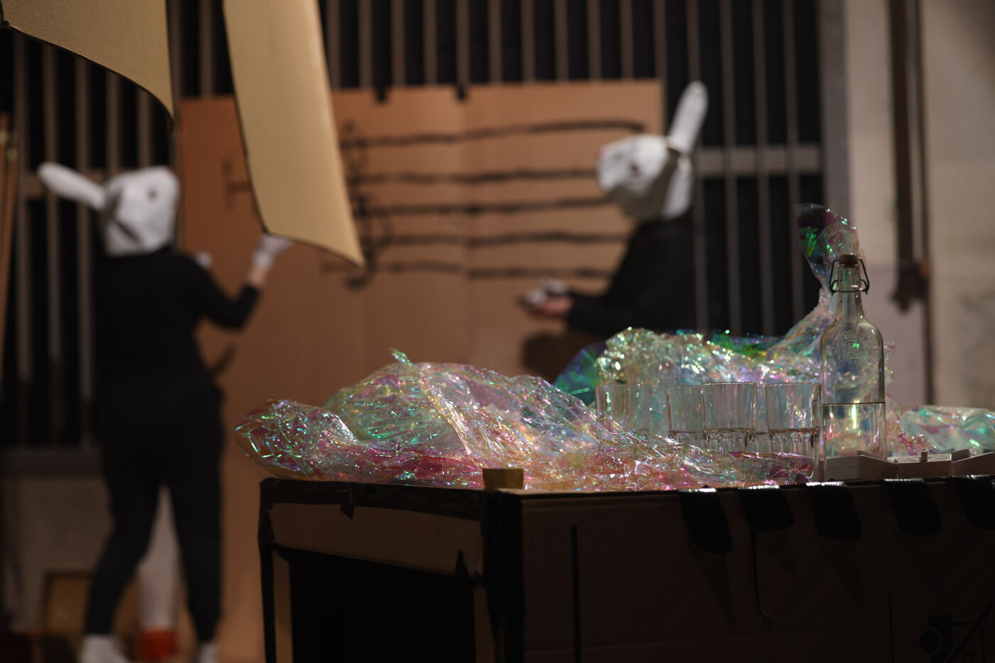 Alle akustischen und szenischen Vorgänge sind aus (luziden) Träumen von Georg Nussbaumer und den Performer*innen entwickelt. Die daraus entstandenen Traumprotokolle bilden die Prosavorlage für das Stück.