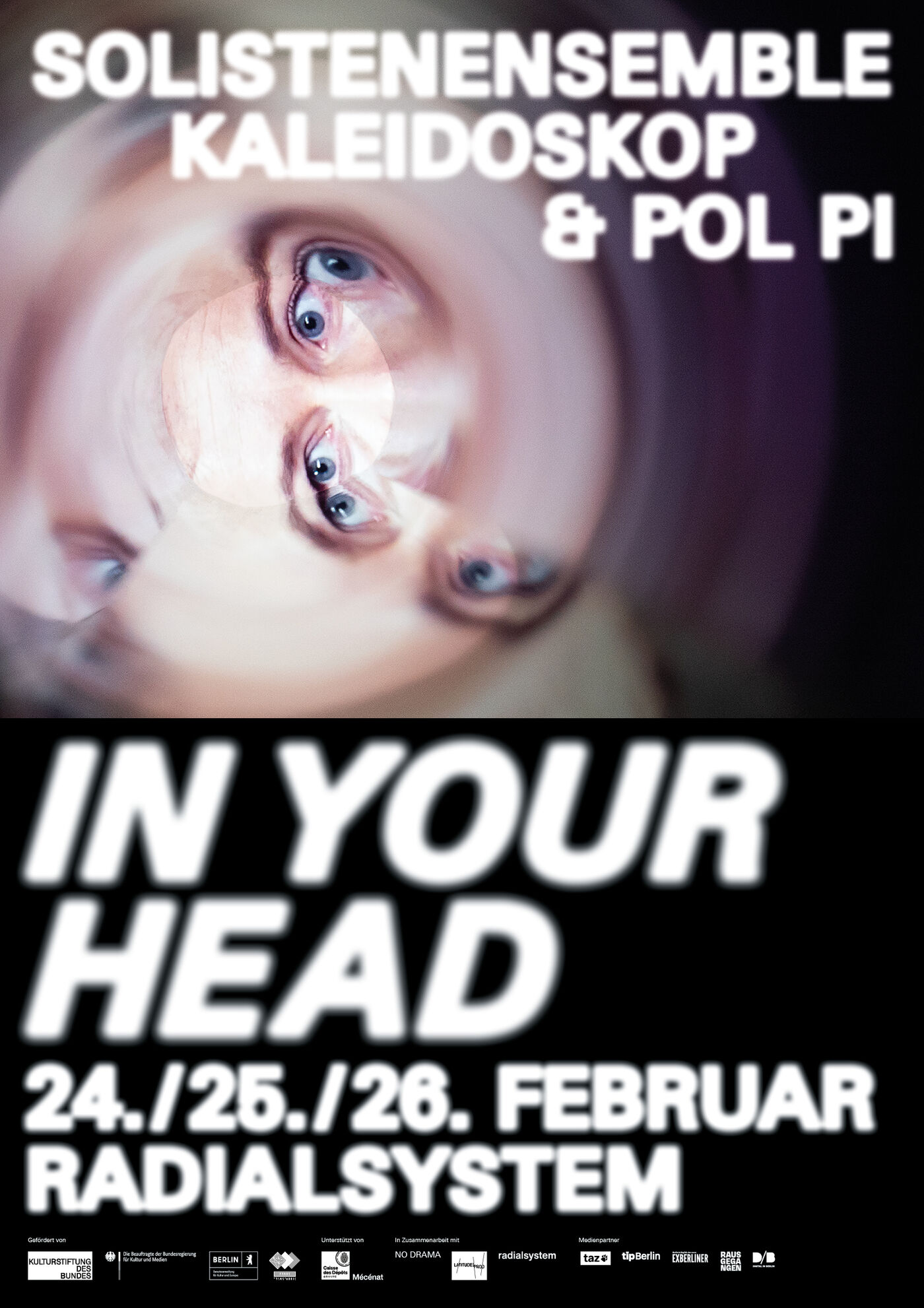 Während seiner zweiwöchigen „Corps Espace Temps“-Residenz im Frühjahr 2022 im Radialsystem hat Pol Pi gemeinsam mit Musiker*innen des Solistenensembles Kaleidoskop seinen künstlerischen Fokus vertieft und am Konzept zu „ IN YOUR HEAD“ gearbeitet.