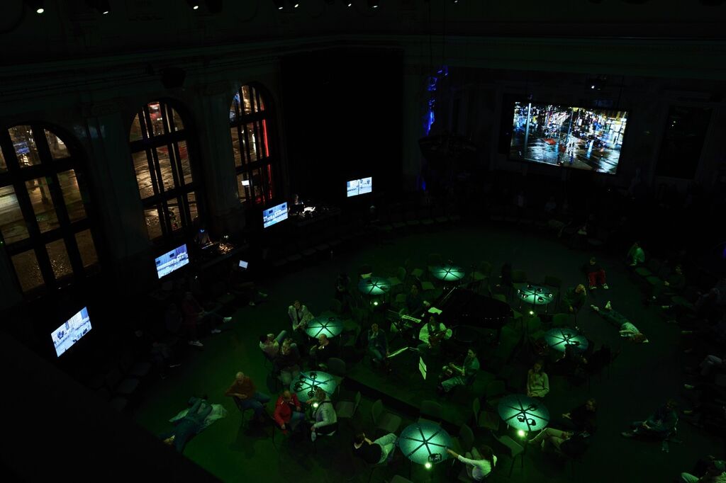 TURN ist ein Abend der Gespräche, Musik und Tanz. Regeln, Ränge und Konventionen sind ständig im Wandel. Was 1825 als thé dansant im Geburtsjahr von Strauss beginnt, wird zu einem Walzer durch 200 Jahre Kapitalismus. Immer in Bewegung, immer rotierend, symbolisiert der Walzer die Suche nach einer alternativen Gesellschaft. Gob Squad unterläuft den Dresscode und öffnet die Türen des Theaters für die Welt draußen. Orte verändern sich, neue Konstellationen entstehen. TURN stellt eine Gemeinschaft von Gleichen dar, die so harmonisch ist wie der Walzer selbst. Lass die Tische sich drehen!